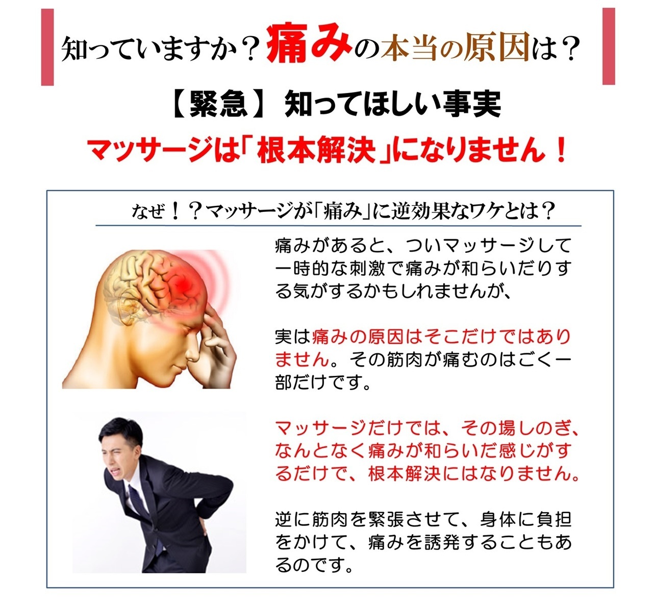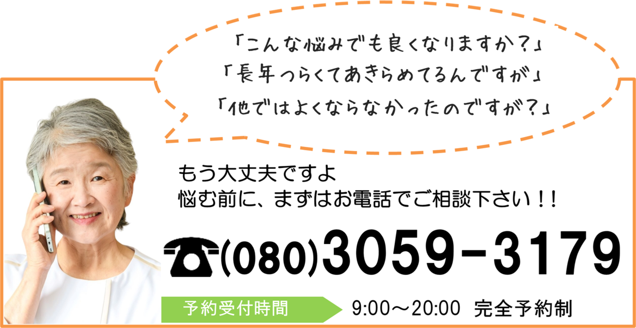 そしてどんな些細なことでも良いので、私に相談してください。きっと体の痛みや不調を根本的に解決する道筋が見つかるはずです。あなたからのお電話をお待ちしています。
