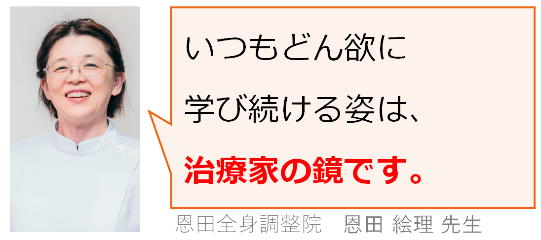 本格的に整体を学ぶため、ゴッドハンドと呼ばれる先生方のセミナーに寸暇を惜しんで通い、技術の習得に励みました。